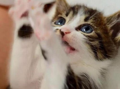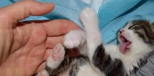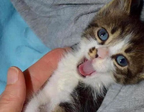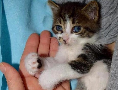 蓝蓝是一只早产的小猫,所以他比其他小猫要小。再加上它没有得到足够的营养,身体就出现了很多问题。