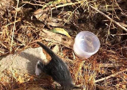 小猫被丢在垃圾堆,大叔好心给它喂水,它的一个举动令大叔心软了